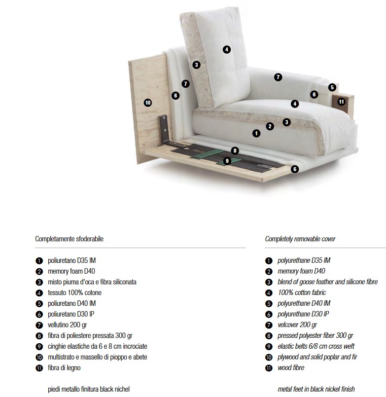 Armchair padded and upholstered with fabrics in the following categories: