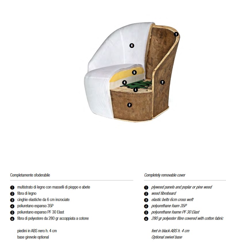 Feet in black ABS, height 4 cm. Swivel base optional.