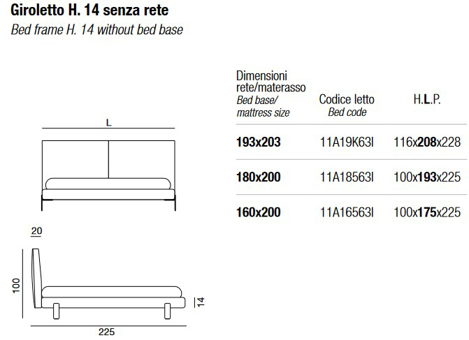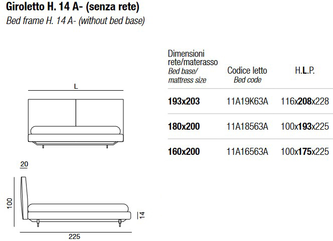 - Slatted Frame H. 14 A- without slatted frame - 160 x 200 cm