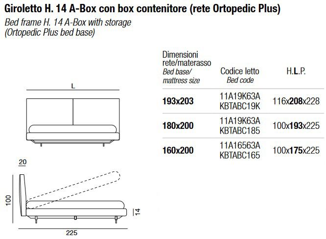 - Slatted Frame H. 14 A-Box with storage box (Ortopedic Plus slatted frame) - 193 x 203 cm