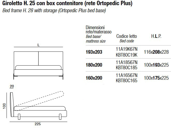 - Slatted Frame H. 25 with storage box (Ortopedic Plus slatted frame) - 193 x 203 cm