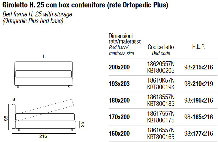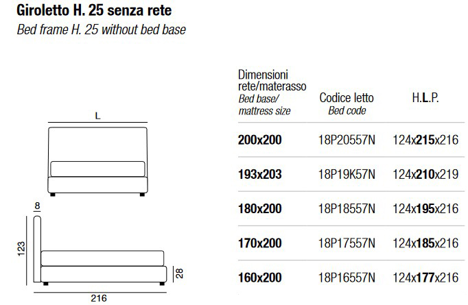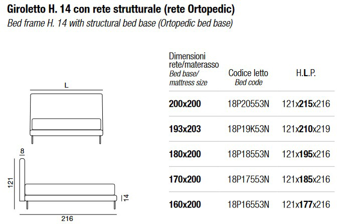 Available in the following sizes (the dimensions refer to the mattress and bed base size):
