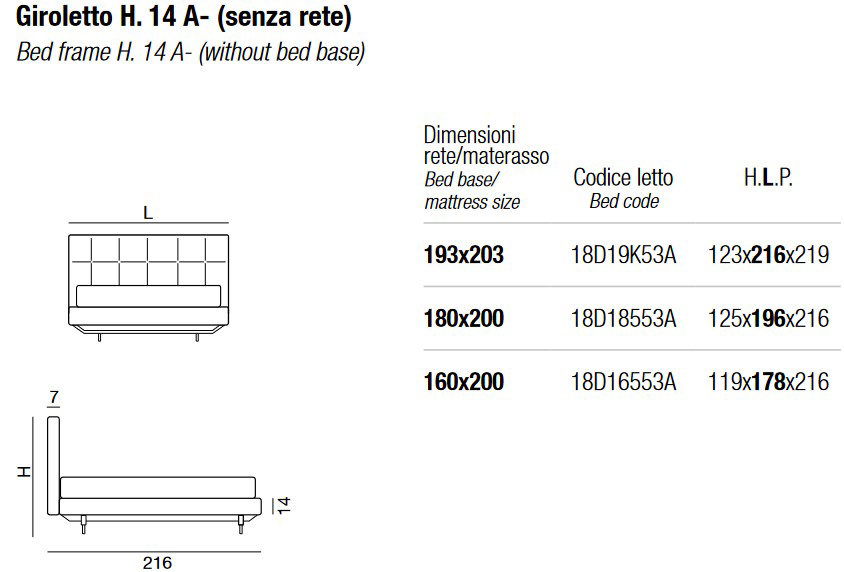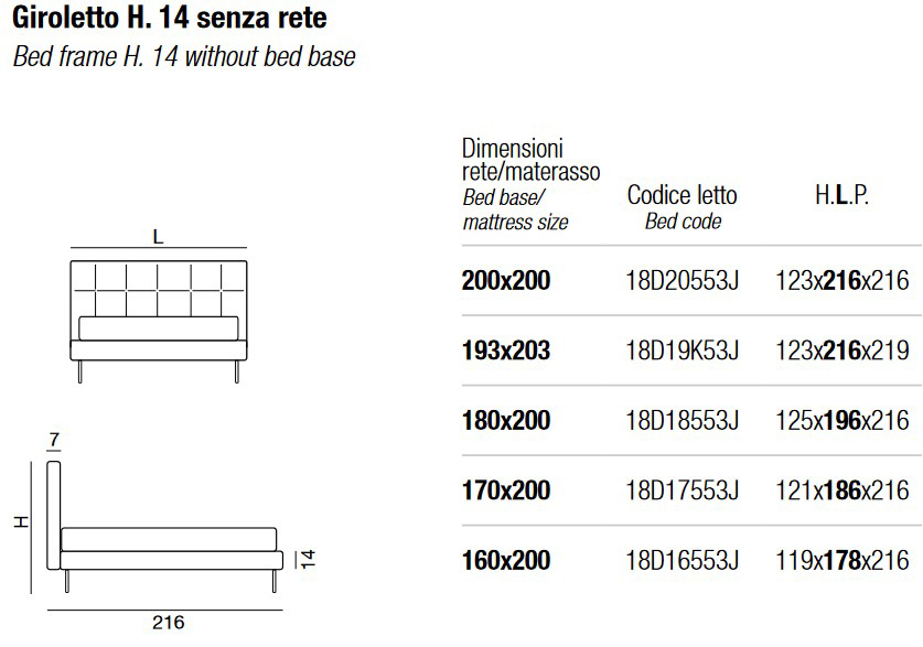 Available in the following sizes (the dimensions refer to the mattress and bed frame space):