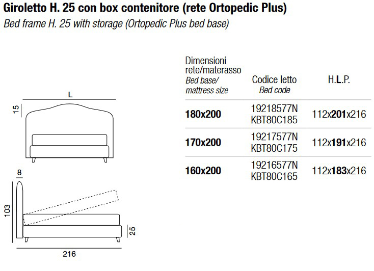 Available in the following sizes (the listed dimensions refer to the mattress and slat size):