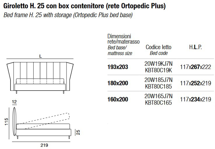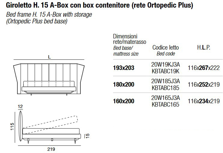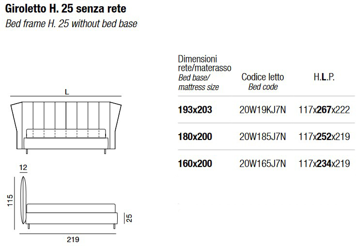 The versions with bed frames H. 15 or H. 25 can be paired with the following legs: