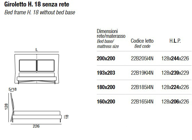 Available in the following sizes (the dimensions refer to mattress and slat size):