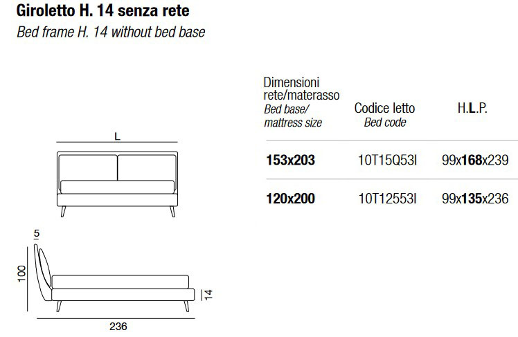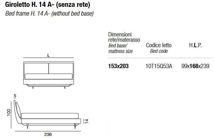 - Bed frame H. 14 A- without slatted base - 153 x 203