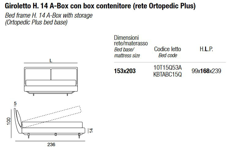 - Bed frame H. 14 A-Box with storage box (Orthopedic Plus slatted base) - 153 x 203