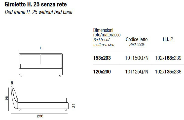 - Bed frame H. 25 without slatted base - 183 x 203