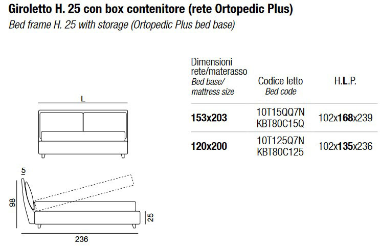 - Bed frame H. 25 with storage box (Orthopedic Plus slatted base) - 153 x 203
