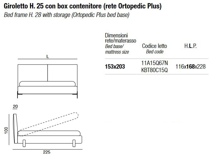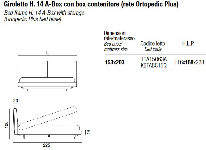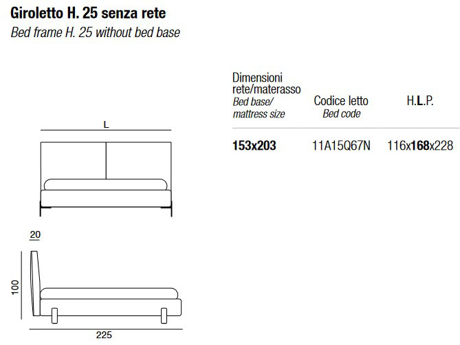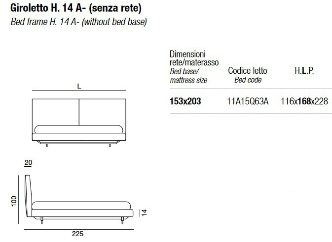 The versions with bed frame H. 14 or H. 25 can be combined with the following feet: