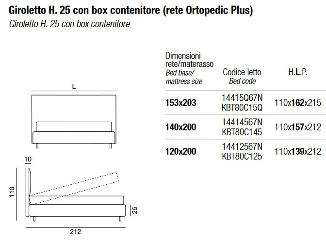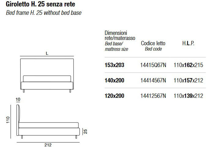 Versions with bed frame H. 14 or H. 25 can be combined with the following legs: