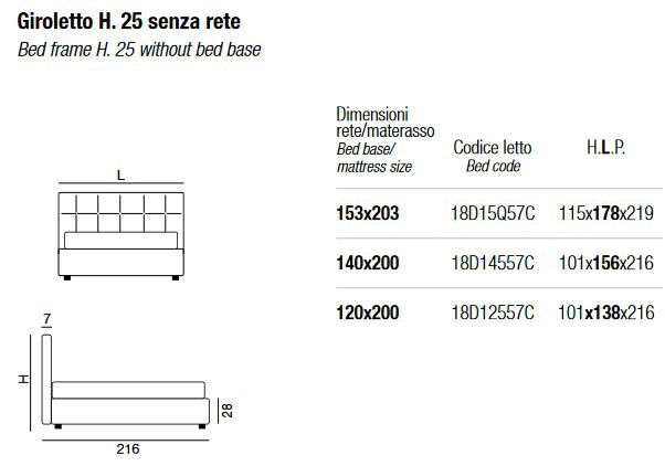 Available in the following sizes (the dimensions listed refer to mattress and bed base size):