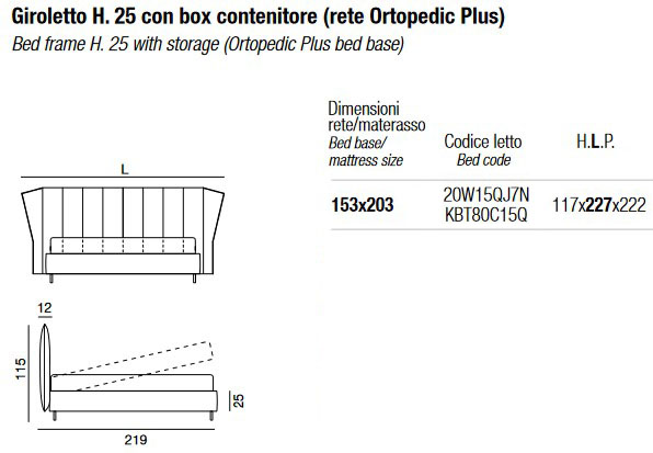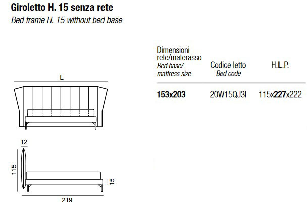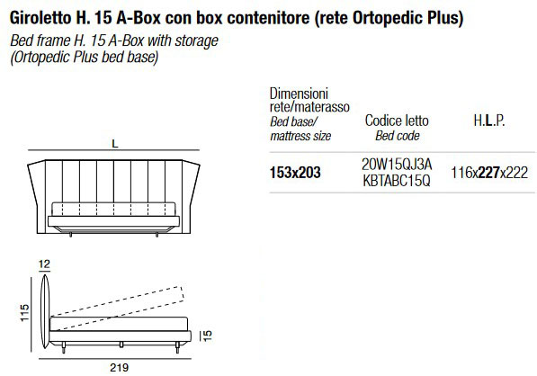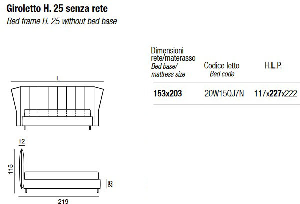 The versions with bed frame H. 15 or H. 25 can be combined with the following legs: