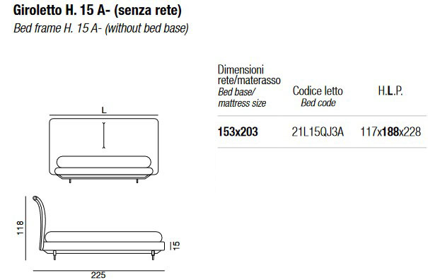 The versions with bed frame H. 15 or H. 25 can be combined with the following legs: