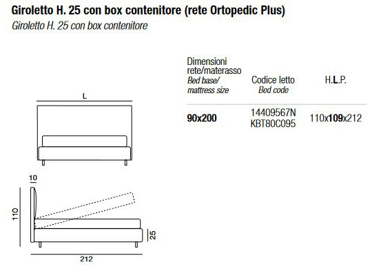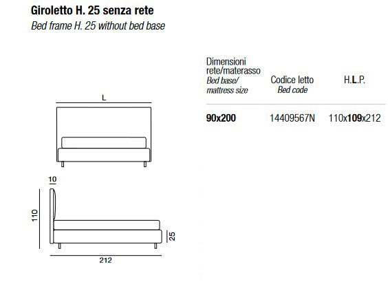 The versions with H. 14 or H. 25 bed frame can be combined with the following legs: