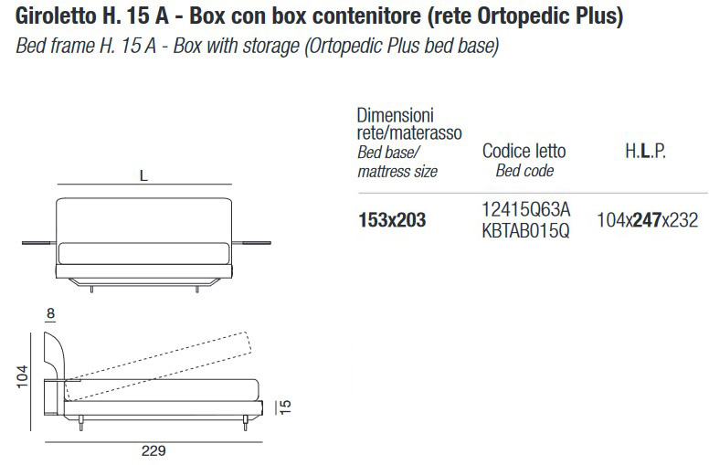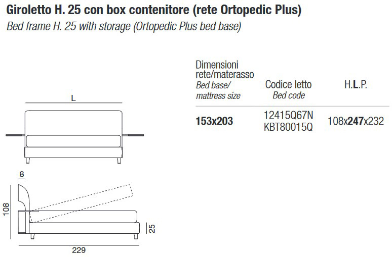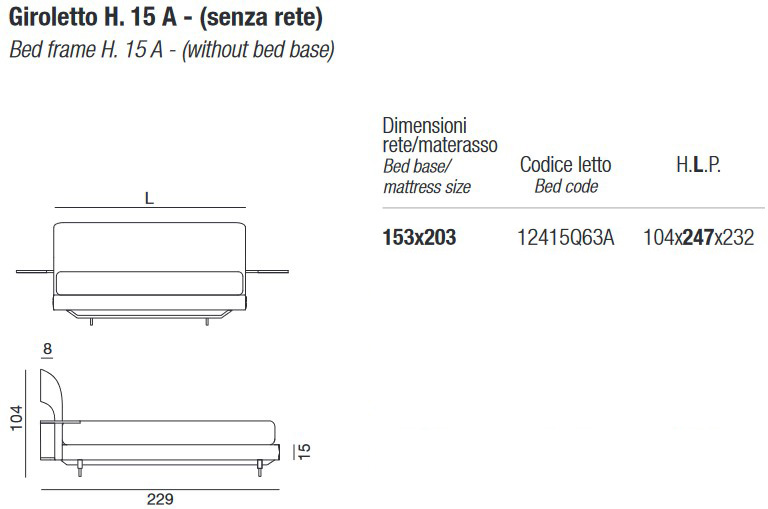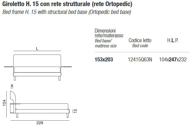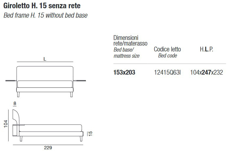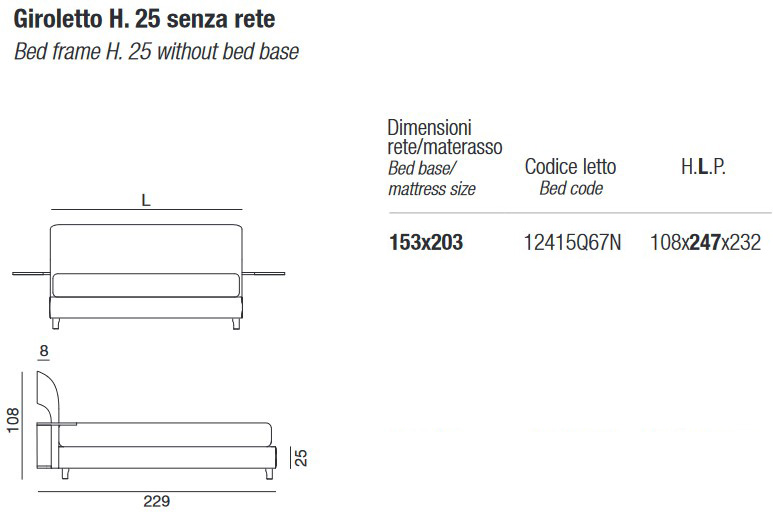 The versions with bed frame H. 14 or H. 25 can be combined with the following legs: