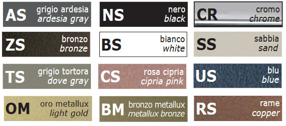 The legs are available in steel with the following finishes:
