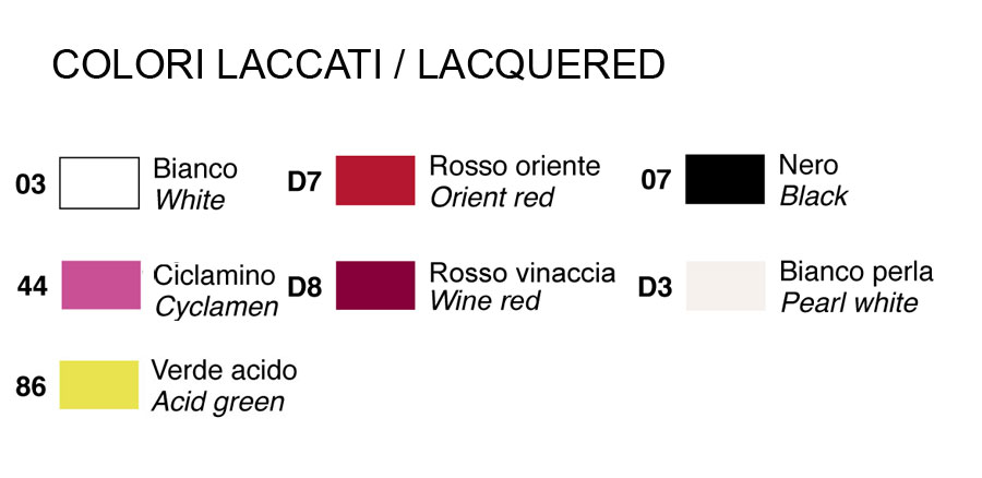 Associazione Nome-Colore: i nomi dei colori potrebbero non corrispondere realmente al colore del campione. Pertanto, vi invitiamo a basarvi maggiormente sulla colorazione dell'immagine e non esclusivamente sui nomi. Per info e suggerimenti, siamo a vostra disposizione.