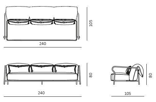 The Salò sofa by Unopiù is a refined solution for outdoor furnishing, with a modern and minimalist design. The frame, made of powder-coated aluminum, is weather-resistant and ensures both lightness and strength. The padded, removable cushions, made with high-quality outdoor fabrics, complete the aesthetic with a cozy and functional touch. Perfect for those who want an outdoor space with elegant, relaxed, and contemporary style.