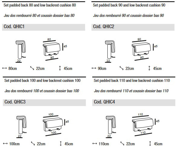 - Pair of Cushions 110 and 100 QHIB4 - W. 110 x D. 22 x H. 45 cm