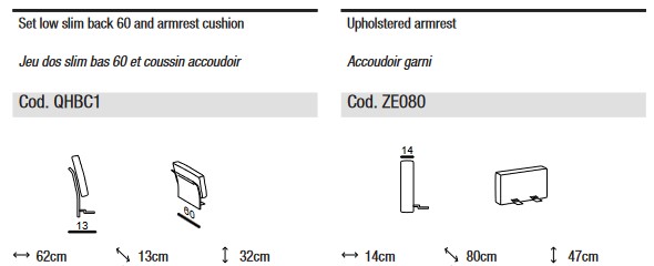 - Armrest ZE080 - W. 14 x D. 13 x H. 47 cm