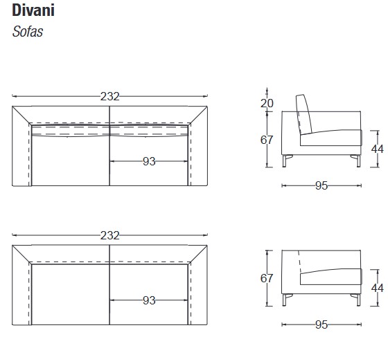 WARNING: The photos in the listing show the different versions of the sofa. To choose the desired version, please refer to the technical sheets in the dimensions section.