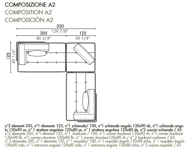 Melvil composition L2 - L. 330 cm x D. 125 cm x H. 65 cm